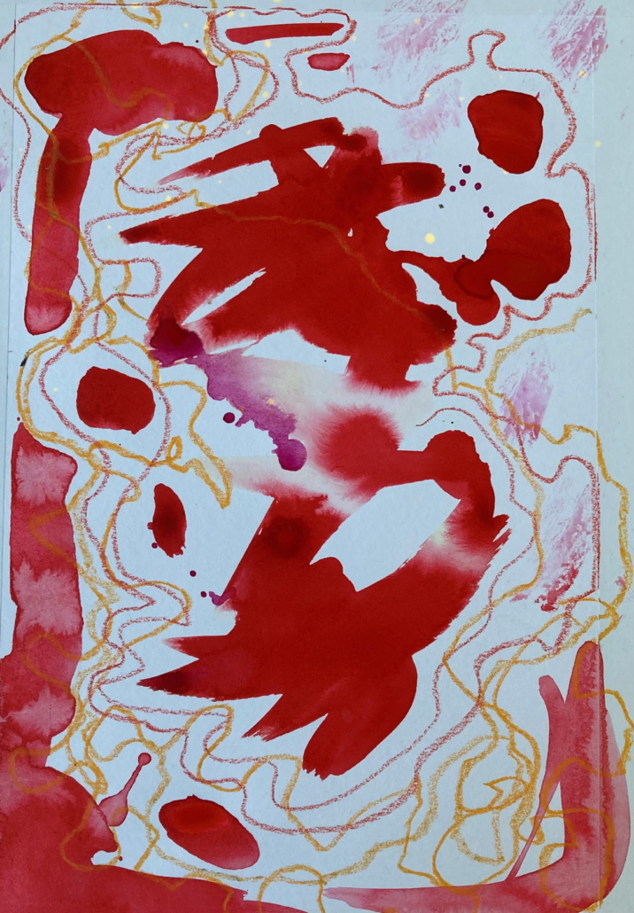 Zunehmend wende ich mich der abstrahierten Formensprache, die mir eine Welt der Freiheit mit ganz eigener Dynamik zeigt, zu. Dabei experimentiere ich mit Collage und Zeichnung.