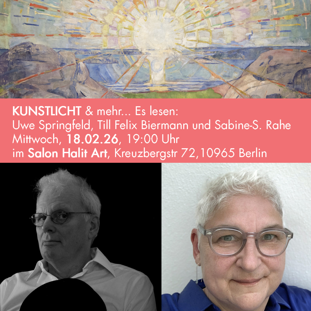 18.02.2026, 19 Uhr, Lesung „Kunstlicht“ Anthologie mit Uwe Springfeld, Till Felix Biermann & Sabine -S. Rahe